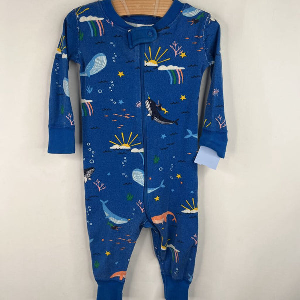 Size 6-12m (70): Hanna Andersson Blue Sea Print 1pc PJs