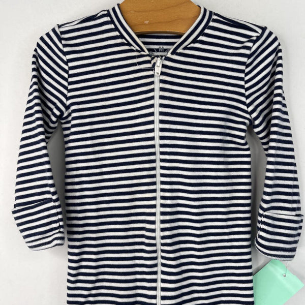Size 6-9m: Primary Black/White Striped 1pc Footy PJs