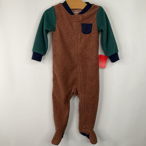 Size 9m: Carters Brown Green 1pc Fleece Footy PJs