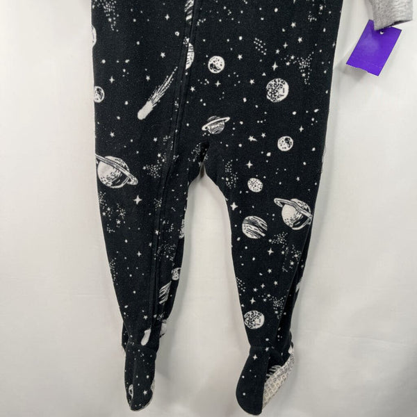 Size 2: Cater's Balck/Grey Space Fleece 1pc Footy PJs