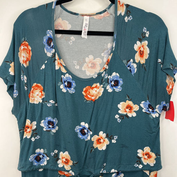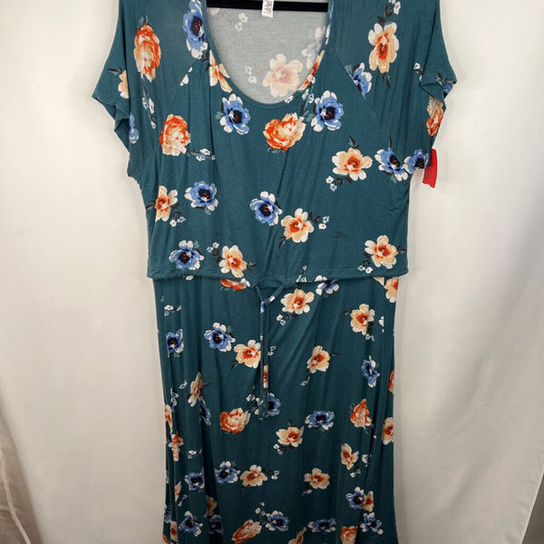 Size XL: Latched Mama Teal w/ Flowers Short Sleeve Dress