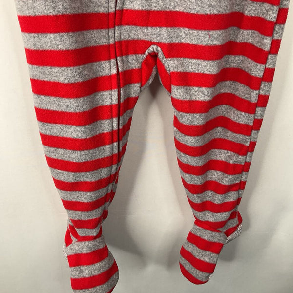 Size 18m: Carter's Red/Grey Striped Santa Print Fleece 1pc Footy PJs