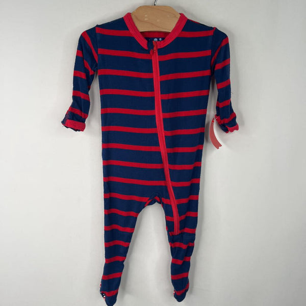Size NB-3m: Kickee Pants Red And Blue Striped 1pc Footy PJs