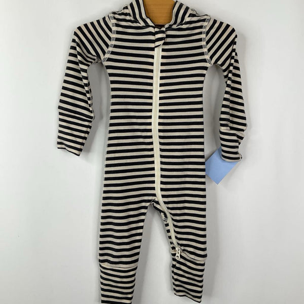 Size NB: Hanna Andersson Black/White Striped Zip Up 1pc PJs