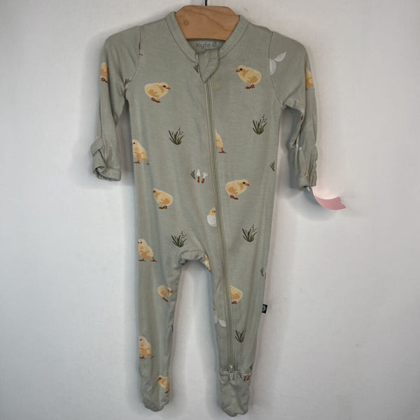 Size 0-3m: Kyte Green Chick Print 1pc Footy PJs