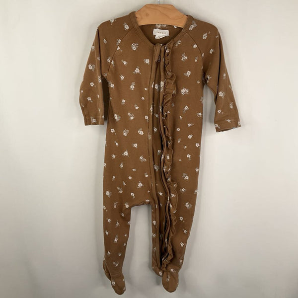 Size 6-12m: Jamie Kay Brown/White Floral Pattern 1pc Footy PJs