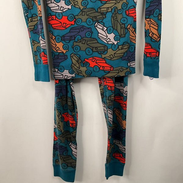Size 8 (130): Hanna Anderson Teal Cars Long Sleeve 2pc PJS