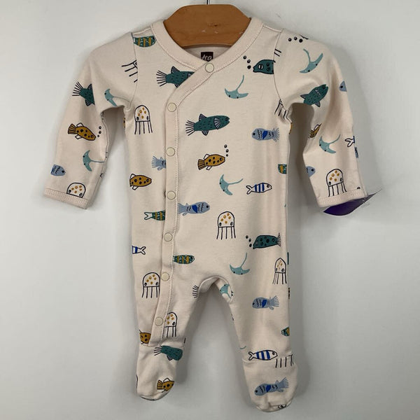 Size NB: Tea White Fish Print 1pc Footy PJs