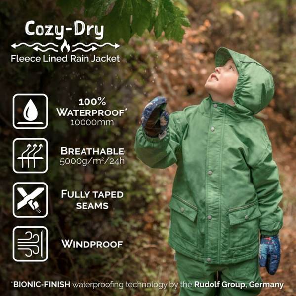 Size 2: Jan & Jul MINTY FOREST Cozy Dry Waterproof Fleece Lined Zip Up Raincoat NEW