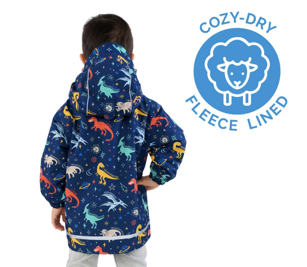 Size 4: Jan & Jul SPACE DINOS Cozy Dry Waterproof Fleece Lined Zip Up Raincoat NEW