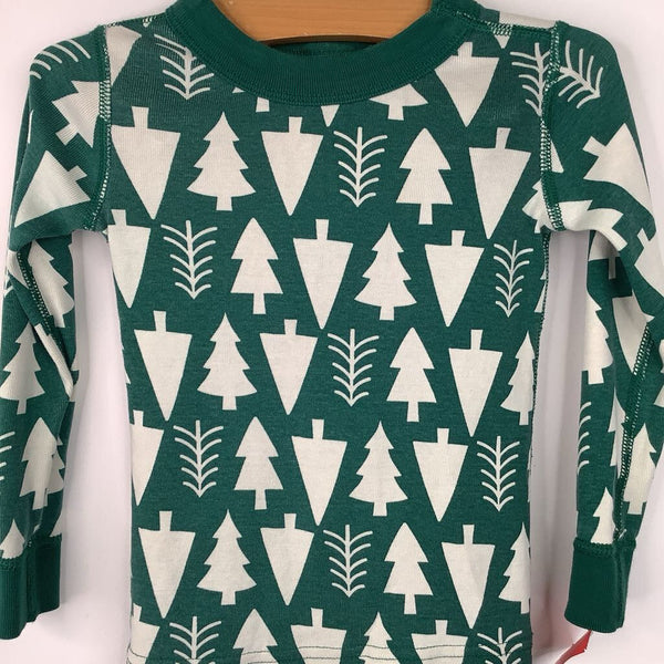 Size 3 (90): Hanna Andersson Green/White Trees 2pc PJs