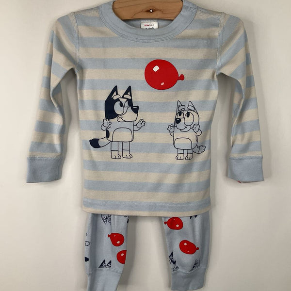 Size 2 (85): Hanna Andersson White/Blue Striped Bluey Print 2pc PJs