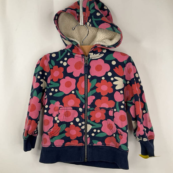 Size 3 (90): Hanna Andersson Blue/Pink Floral Zip-Up Hoodie
