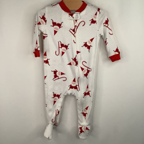 Size 3-6m: Pottery Barn White/Red Candy Cane Santa Print 1pc Footy PJs
